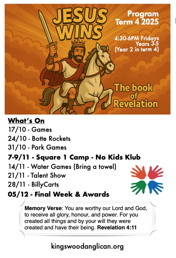 Download the Kingswood Anglican Kids and Youth registration/permission form or fill in the online form